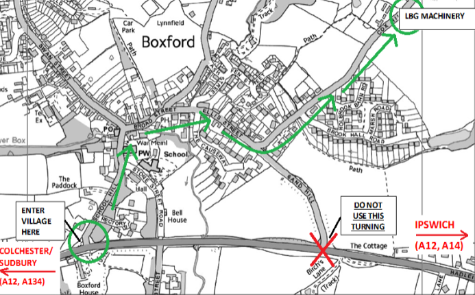 As you pass Hadleigh on your left turn right onto Stone Street/A1141 (signposted towards Lavenham and Kersey). Proceed until you see the turning on the left for Kersey (signposted Kersey and The Bell Inn). Turn left onto Mill Lane and continue on this road, passing through Wicker Street Green and coming to the top of Cox Hill. Continue until you arrive at our yard on the right halfway down Cox Hill.